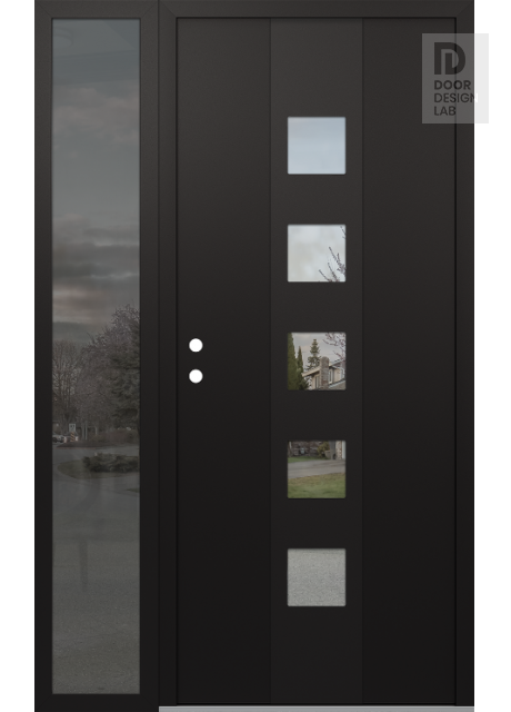 Modern Steel Front Door DIAMOND A13 48" X 80" BLACK/BLACK CLEAR GLASS PANEL BLACK LHI WITH SIDELITE MIRRORED GLASS