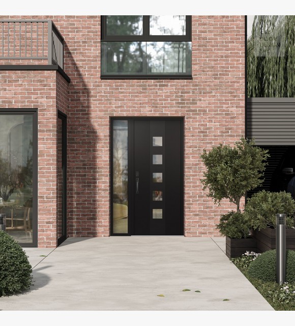 The double-chamber glazing combined with polystyrene insulation reduces heat loss by 40-50% compared to conventional exterior doors:
