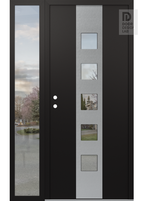Modern Steel Front Door DIAMOND A13 48" X 80" BLACK/BLACK CLEAR GLASS PANEL STAINLESS STEEL LHI WITH SIDELITE CLEAR GLASS