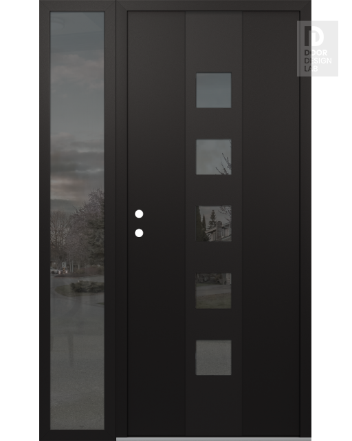 Modern Steel Front Door DIAMOND A13 48" X 80" BLACK/BLACK MIRRORED GLASS PANEL BLACK LHI WITH SIDELITE MIRRORED GLASS