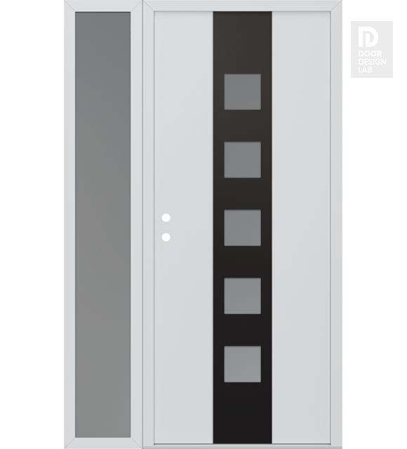 Modern Steel Front Door DIAMOND A13 48" X 80" BLACK/WHITE FROSTED GLASS PANEL BLACK LHI WITH SIDELITE FROSTED GLASS