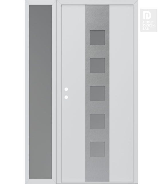 Modern Steel Front Door DIAMOND A13 48" X 80" BLACK/WHITE FROSTED GLASS PANEL STAINLESS STEEL LHI WITH SIDELITE FROSTED GLASS