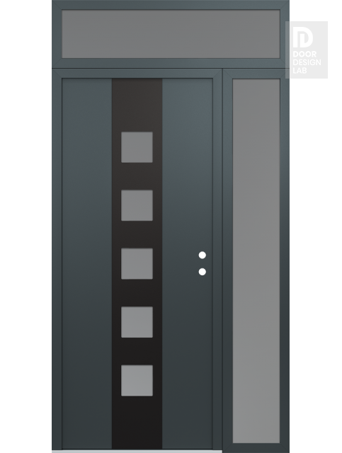 Modern Steel Front Door DIAMOND A13 48" X 96" ANTHRACITE/ANTHRACITE FROSTED GLASS PANEL BLACK RHI WITH SIDELITE AND TRANSOM FROSTED GLASS
