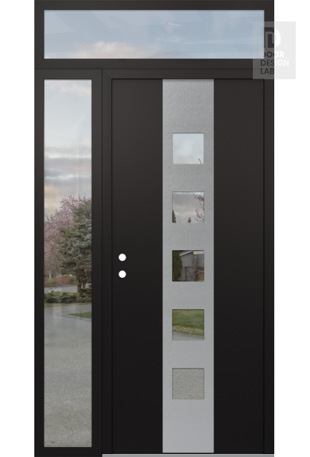 Modern Steel Front Door DIAMOND A13 48" X 96" BLACK/BLACK CLEAR GLASS PANEL STAINLESS STEEL LHI WITH SIDELITE AND TRANSOM CLEAR GLASS
