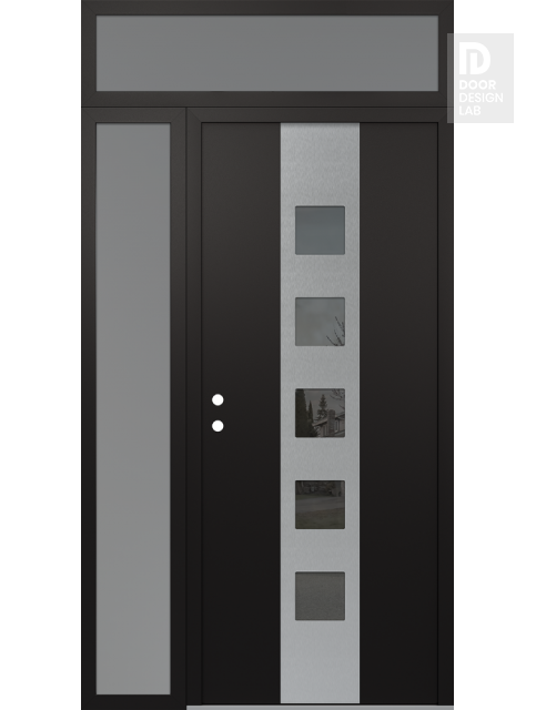 Modern Steel Front Door DIAMOND A13 48" X 96" BLACK/BLACK MIRRORED GLASS PANEL STAINLESS STEEL LHI WITH SIDELITE AND TRANSOM FROSTED GLASS
