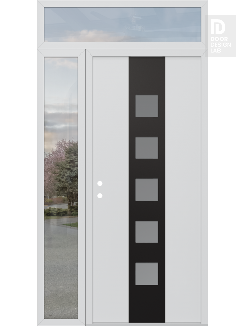 Modern Steel Front Door DIAMOND A13 48" X 96" BLACK/WHITE FROSTED GLASS PANEL BLACK LHI WITH SIDELITE AND TRANSOM CLEAR GLASS