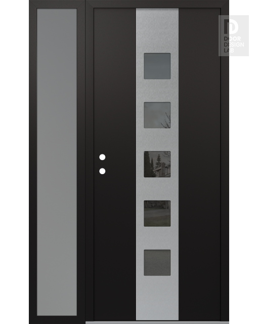 Modern Steel Front Door DIAMOND A13 50" X 80" BLACK/BLACK MIRRORED GLASS PANEL STAINLESS STEEL LHI WITH SIDELITE FROSTED GLASS