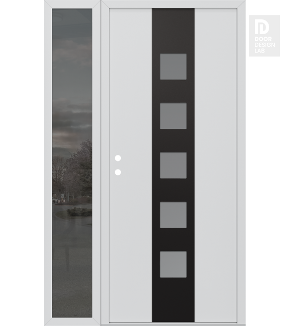 Modern Steel Front Door DIAMOND A13 50" X 80" BLACK/WHITE FROSTED GLASS PANEL BLACK LHI WITH SIDELITE MIRRORED GLASS
