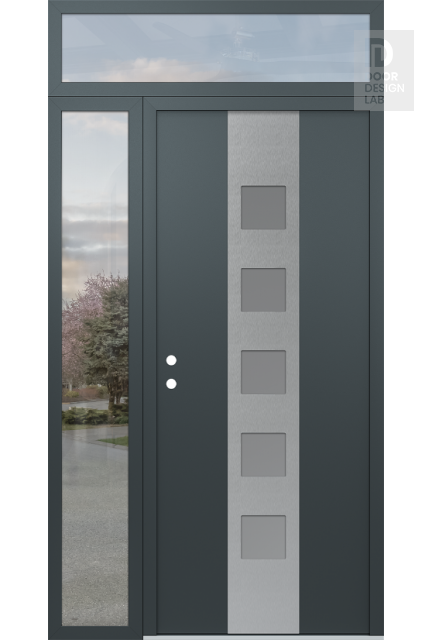 Modern Steel Front Door DIAMOND A13 50" X 96" ANTHRACITE/ANTHRACITE FROSTED GLASS PANEL STAINLESS STEEL LHI WITH SIDELITE AND TRANSOM CLEAR GLASS