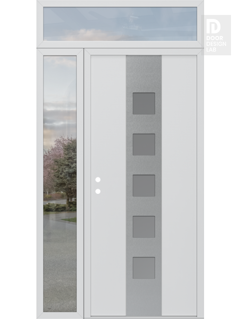 Modern Steel Front Door DIAMOND A13 50" X 96" BLACK/WHITE FROSTED GLASS PANEL STAINLESS STEEL LHI WITH SIDELITE AND TRANSOM CLEAR GLASS