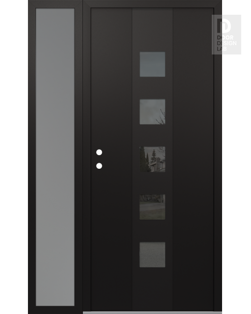 Modern Steel Front Door DIAMOND A13 52" X 80" BLACK/BLACK MIRRORED GLASS PANEL BLACK LHI WITH SIDELITE FROSTED GLASS