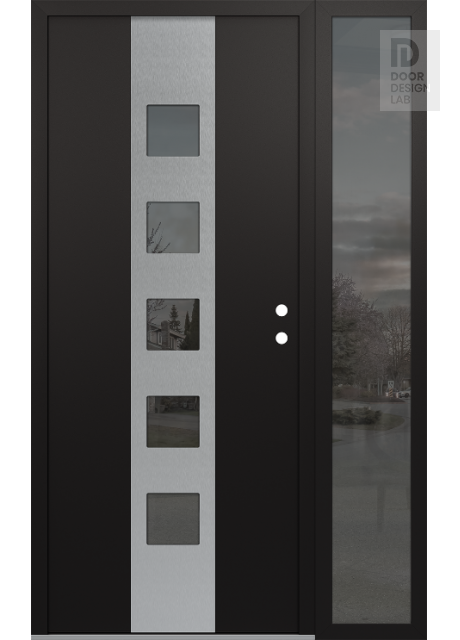 Modern Steel Front Door DIAMOND A13 52" X 80" BLACK/BLACK MIRRORED GLASS PANEL STAINLESS STEEL RHI WITH SIDELITE MIRRORED GLASS