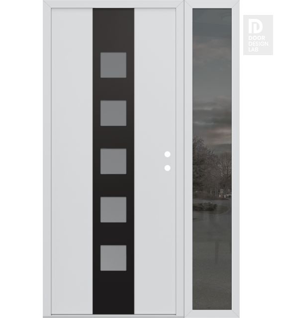 Modern Steel Front Door DIAMOND A13 52" X 80" BLACK/WHITE FROSTED GLASS PANEL BLACK RHI WITH SIDELITE MIRRORED GLASS