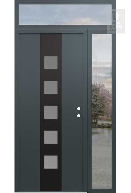 Modern Steel Front Door DIAMOND A13 52" X 96" ANTHRACITE/ANTHRACITE FROSTED GLASS PANEL BLACK RHI WITH SIDELITE AND TRANSOM CLEAR GLASS