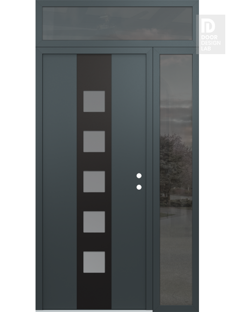 Modern Steel Front Door DIAMOND A13 52" X 96" ANTHRACITE/ANTHRACITE FROSTED GLASS PANEL BLACK RHI WITH SIDELITE AND TRANSOM MIRRORED GLASS