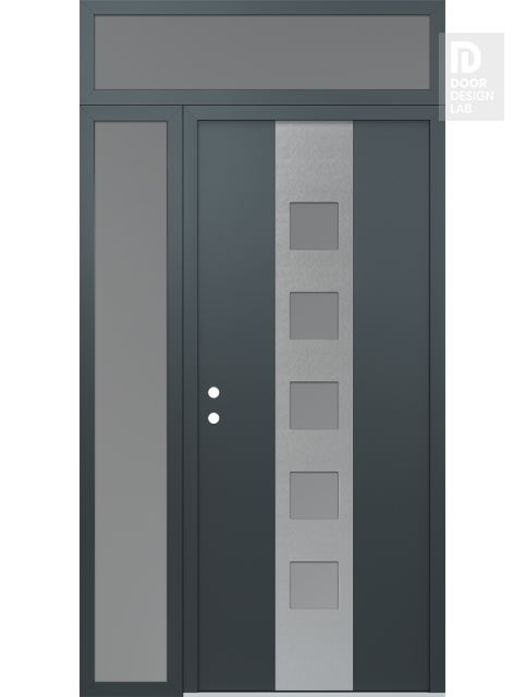 Modern Steel Front Door DIAMOND A13 52" X 96" ANTHRACITE/ANTHRACITE FROSTED GLASS PANEL STAINLESS STEEL LHI WITH SIDELITE AND TRANSOM FROSTED GLASS
