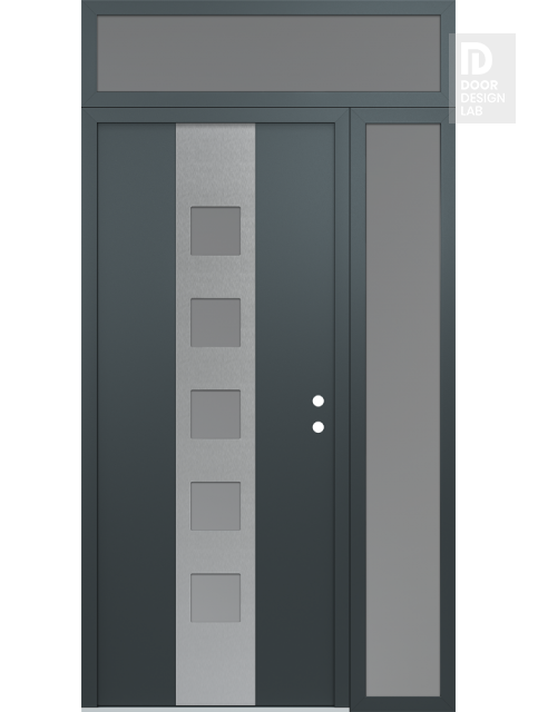 Modern Steel Front Door DIAMOND A13 52" X 96" ANTHRACITE/ANTHRACITE FROSTED GLASS PANEL STAINLESS STEEL RHI WITH SIDELITE AND TRANSOM FROSTED GLASS