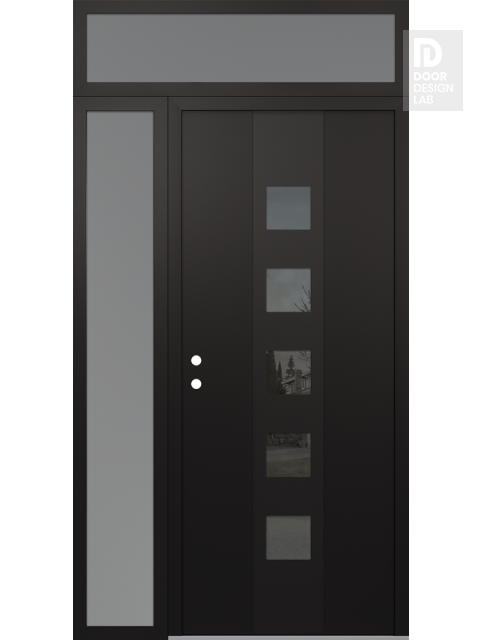 Modern Steel Front Door DIAMOND A13 52" X 96" BLACK/BLACK MIRRORED GLASS PANEL BLACK LHI WITH SIDELITE AND TRANSOM FROSTED GLASS