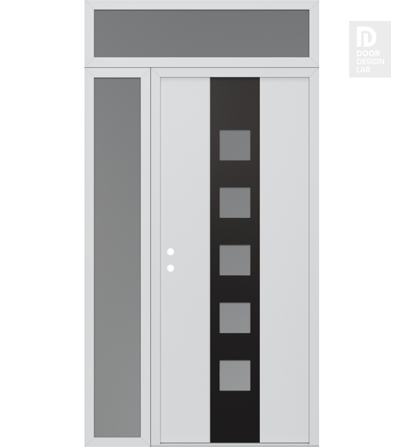 Modern Steel Front Door DIAMOND A13 52" X 96" BLACK/WHITE FROSTED GLASS PANEL BLACK LHI WITH SIDELITE AND TRANSOM FROSTED GLASS