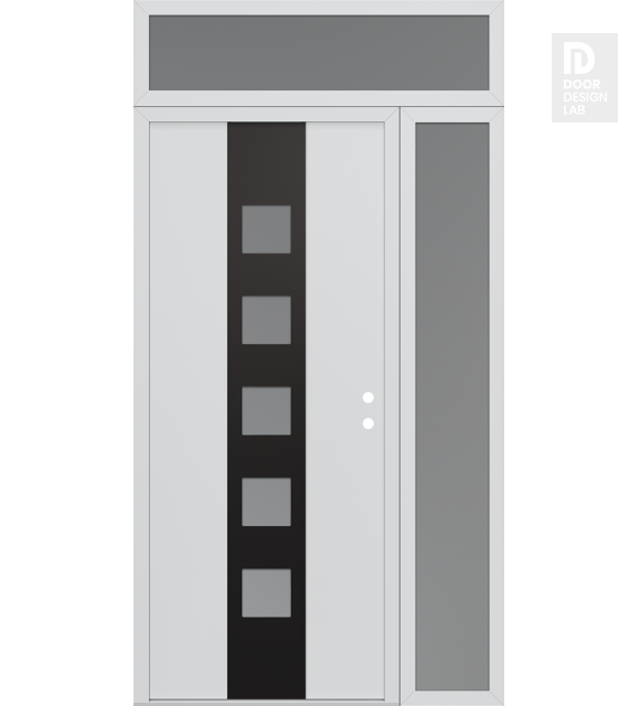 Modern Steel Front Door DIAMOND A13 52" X 96" BLACK/WHITE FROSTED GLASS PANEL BLACK RHI WITH SIDELITE AND TRANSOM FROSTED GLASS