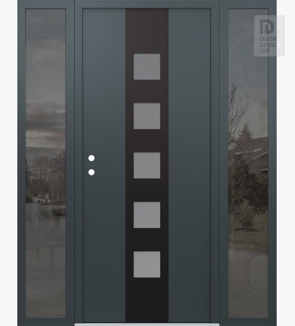 Modern Steel Front Door DIAMOND A13 60" X 80" ANTHRACITE/ANTHRACITE FROSTED GLASS PANEL BLACK LHI WITH 2 SIDELITES MIRRORED GLASS