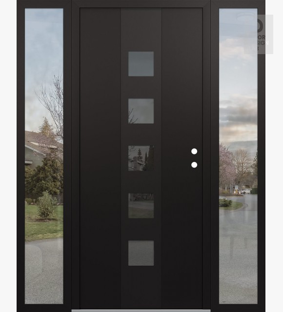 Modern Steel Front Door DIAMOND A13 60" X 80" BLACK/BLACK MIRRORED GLASS PANEL BLACK RHI WITH 2 SIDELITES CLEAR GLASS