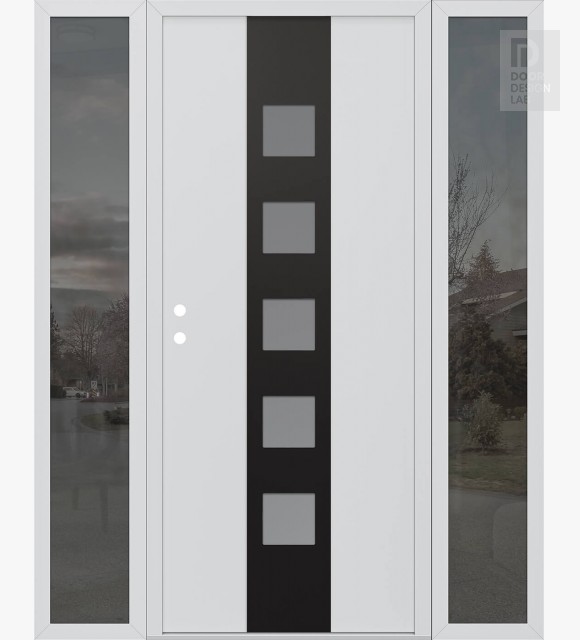 Modern Steel Front Door DIAMOND A13 60" X 80" BLACK/WHITE FROSTED GLASS PANEL BLACK LHI WITH 2 SIDELITES MIRRORED GLASS