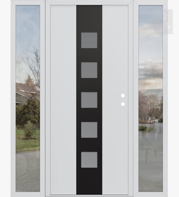 Modern Steel Front Door DIAMOND A13 60" X 80" BLACK/WHITE FROSTED GLASS PANEL BLACK RHI WITH 2 SIDELITES CLEAR GLASS