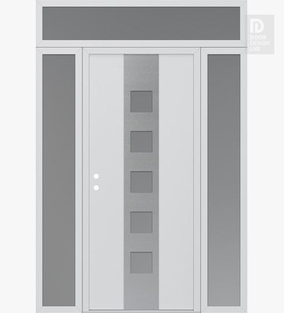 Modern Steel Front Door DIAMOND A13 60" X 96" BLACK/WHITE FROSTED GLASS PANEL STAINLESS STEEL LHI WITH 2 SIDELITES AND TRANSOM FROSTED GLASS