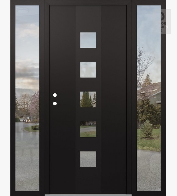 Modern Steel Front Door DIAMOND A13 64" X 80" BLACK/BLACK CLEAR GLASS PANEL BLACK LHI WITH 2 SIDELITES CLEAR GLASS