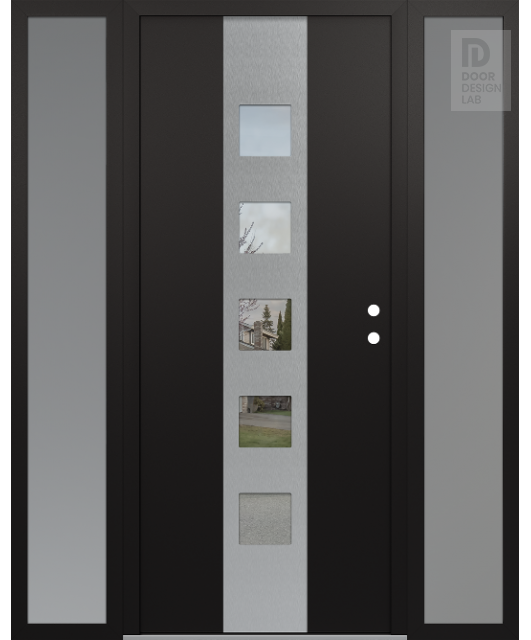 Modern Steel Front Door DIAMOND A13 64" X 80" BLACK/BLACK CLEAR GLASS PANEL STAINLESS STEEL RHI WITH 2 SIDELITES FROSTED GLASS