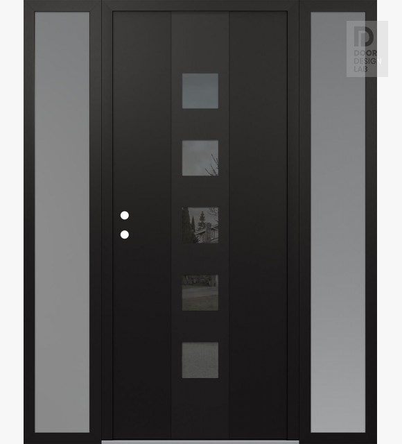 Modern Steel Front Door DIAMOND A13 64" X 80" BLACK/BLACK MIRRORED GLASS PANEL BLACK LHI WITH 2 SIDELITES FROSTED GLASS