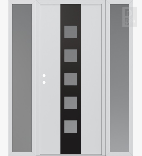 Modern Steel Front Door DIAMOND A13 64" X 80" BLACK/WHITE FROSTED GLASS PANEL BLACK LHI WITH 2 SIDELITES FROSTED GLASS