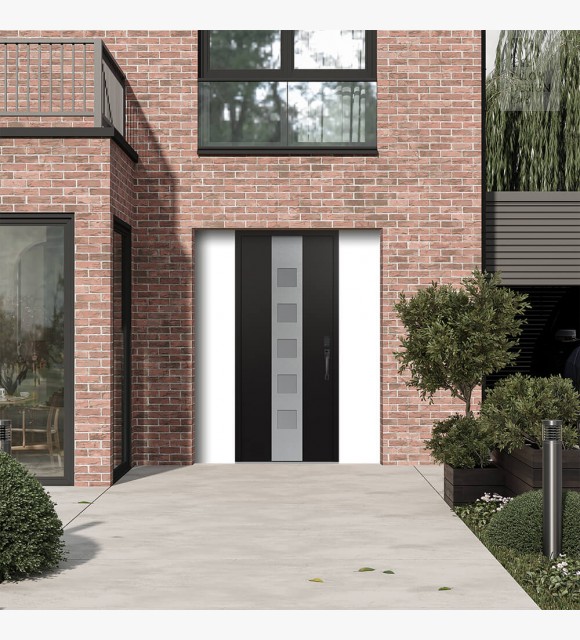 The double-chamber glazing combined with polystyrene insulation reduces heat loss by 40-50% compared to conventional exterior doors: