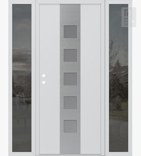 Modern Steel Front Door DIAMOND A13 64" X 80" BLACK/WHITE FROSTED GLASS PANEL STAINLESS STEEL LHI WITH 2 SIDELITES MIRRORED GLASS