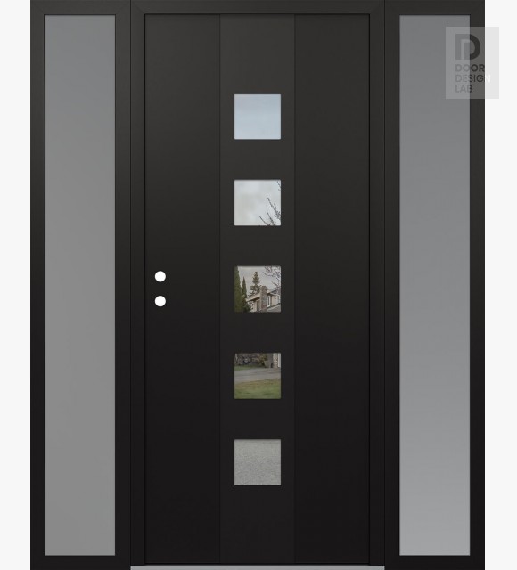 Modern Steel Front Door DIAMOND A13 68" X 80" BLACK/BLACK CLEAR GLASS PANEL BLACK LHI WITH 2 SIDELITES FROSTED GLASS