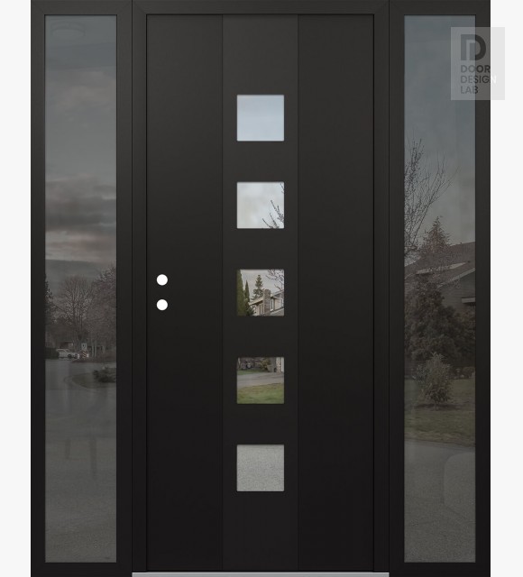 Modern Steel Front Door DIAMOND A13 68" X 80" BLACK/BLACK CLEAR GLASS PANEL BLACK LHI WITH 2 SIDELITES MIRRORED GLASS