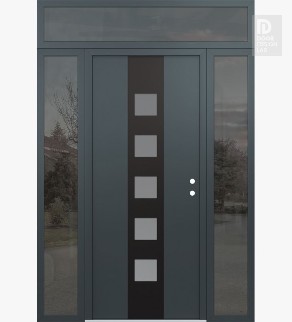 Modern Steel Front Door DIAMOND A13 68" X 96" ANTHRACITE/ANTHRACITE FROSTED GLASS PANEL BLACK RHI WITH 2 SIDELITES AND TRANSOM MIRRORED GLASS