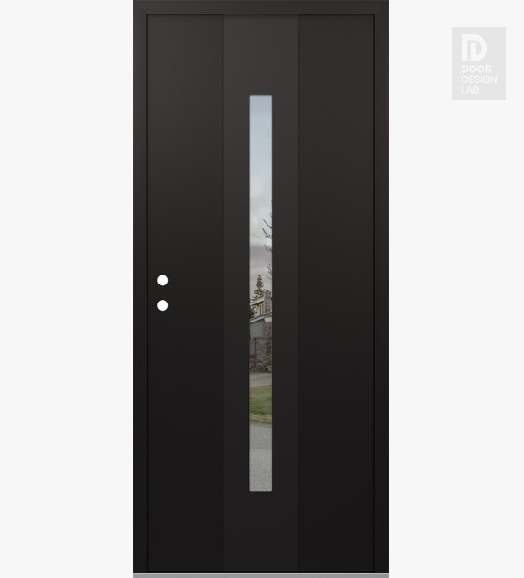 Modern Steel Front Door DIAMOND A2 36" X 80" BLACK/BLACK CLEAR GLASS PANEL BLACK LHI
