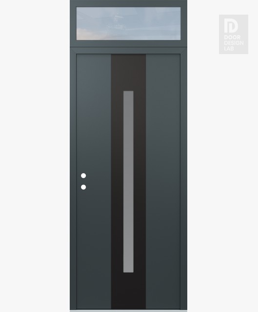 Modern Steel Front Door DIAMOND A2 36" X 96" ANTHRACITE/ANTHRACITE FROSTED GLASS PANEL BLACK LHI WITH TRANSOM CLEAR GLASS