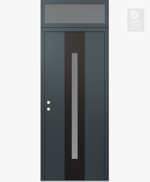 Modern Steel Front Door DIAMOND A2 36" X 96" ANTHRACITE/ANTHRACITE FROSTED GLASS PANEL BLACK LHI WITH TRANSOM FROSTED GLASS