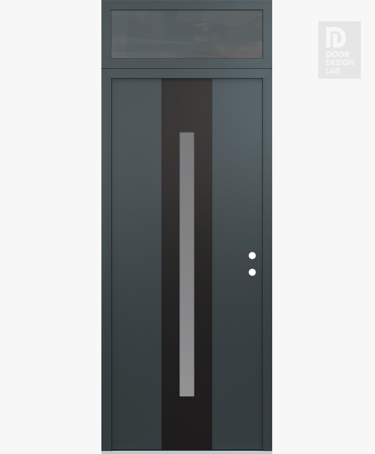 Modern Steel Front Door DIAMOND A2 36" X 96" ANTHRACITE/ANTHRACITE FROSTED GLASS PANEL BLACK RHI WITH TRANSOM MIRRORED GLASS