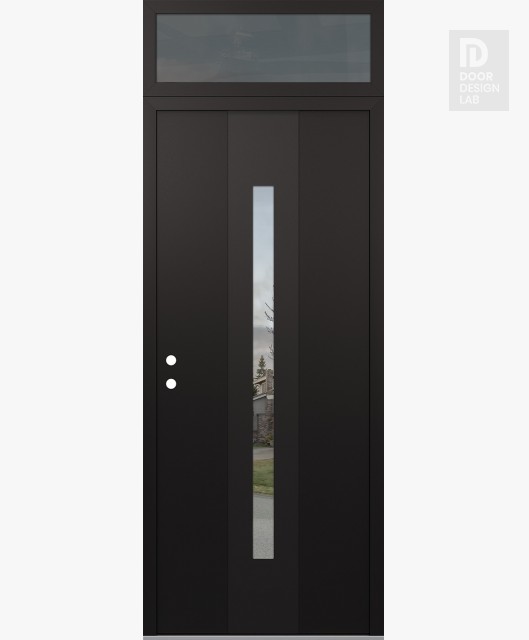 Modern Steel Front Door DIAMOND A2 36" X 96" BLACK/BLACK CLEAR GLASS PANEL BLACK LHI WITH TRANSOM MIRRORED GLASS