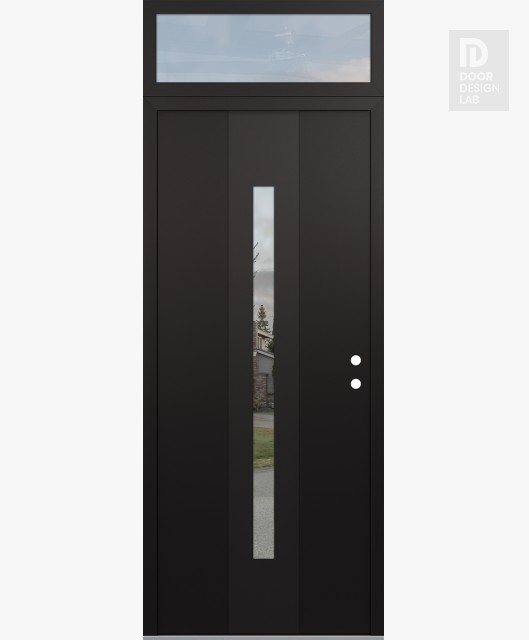 Modern Steel Front Door DIAMOND A2 36" X 96" BLACK/BLACK CLEAR GLASS PANEL BLACK RHI WITH TRANSOM CLEAR GLASS