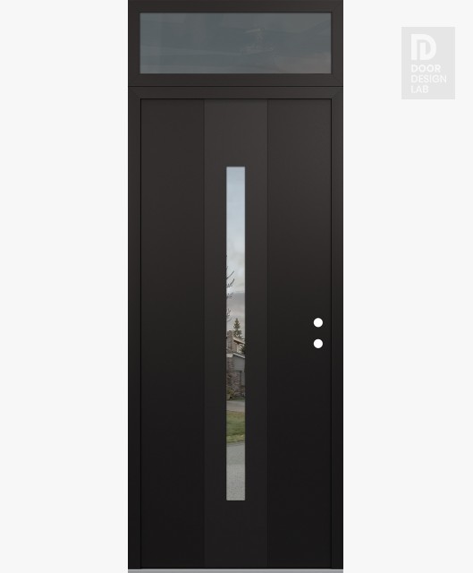 Modern Steel Front Door DIAMOND A2 36" X 96" BLACK/BLACK CLEAR GLASS PANEL BLACK RHI WITH TRANSOM MIRRORED GLASS