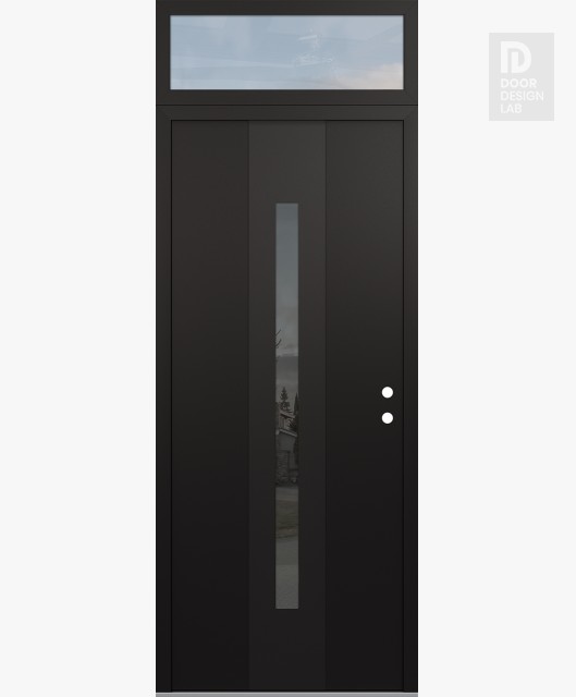 Modern Steel Front Door DIAMOND A2 36" X 96" BLACK/BLACK MIRRORED GLASS PANEL BLACK RHI WITH TRANSOM CLEAR GLASS