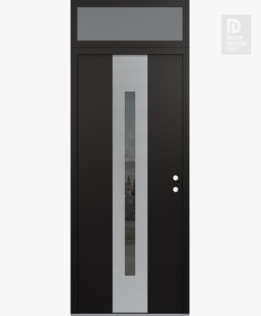 Modern Steel Front Door DIAMOND A2 36" X 96" BLACK/BLACK MIRRORED GLASS PANEL STAINLESS STEEL RHI WITH TRANSOM FROSTED GLASS