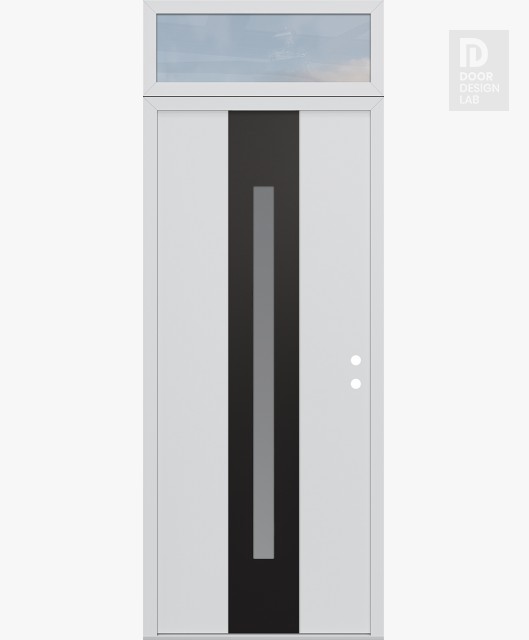Modern Steel Front Door DIAMOND A2 36" X 96" BLACK/WHITE FROSTED GLASS PANEL BLACK RHI WITH TRANSOM CLEAR GLASS