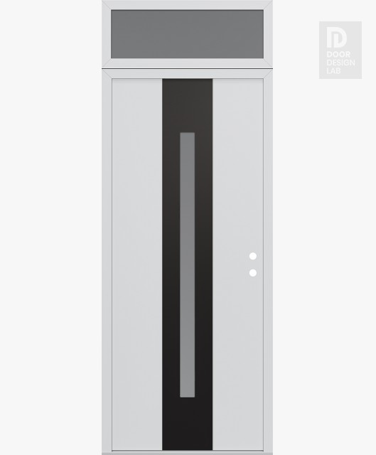 Modern Steel Front Door DIAMOND A2 36" X 96" BLACK/WHITE FROSTED GLASS PANEL BLACK RHI WITH TRANSOM FROSTED GLASS