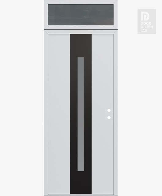 Modern Steel Front Door DIAMOND A2 36" X 96" BLACK/WHITE FROSTED GLASS PANEL BLACK RHI WITH TRANSOM MIRRORED GLASS
